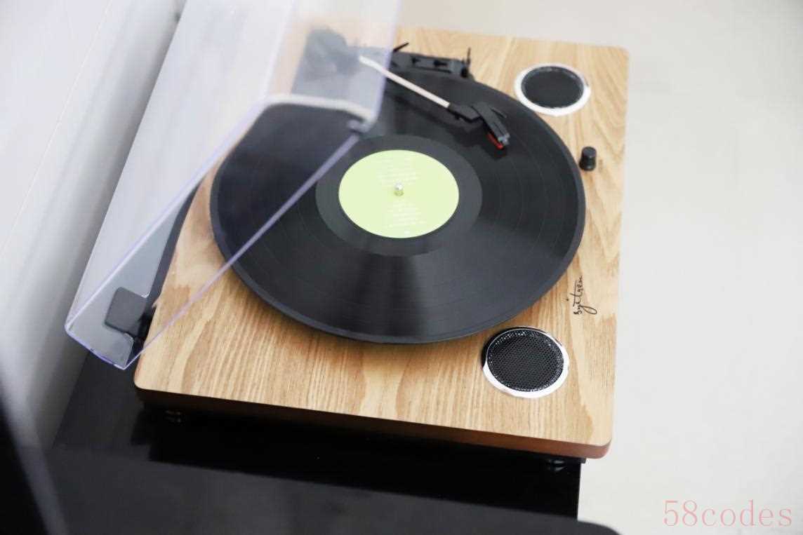 内置音箱,分布在唱片机两侧,而且底部也有留孔,不用担心盖上防尘盖以后音量上会有所减弱,底部音量能够通过反射继续传播,听起来更有立体感,余音绕梁,音质上的表现会比一般音响好很多。