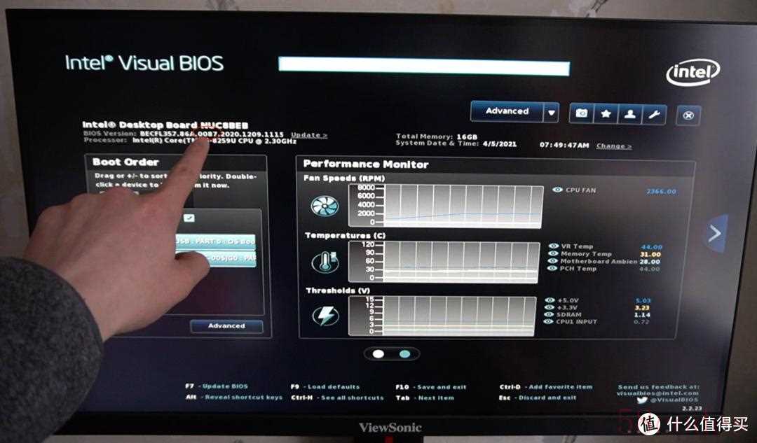 同时,还要检查一下nuc8上面的bios版本,开机按F2,进入bios界面左上角就有。我机器是最新的bios版本0087,我看网络上的例子有讲说太低版本的bios可能有安装上的问题。