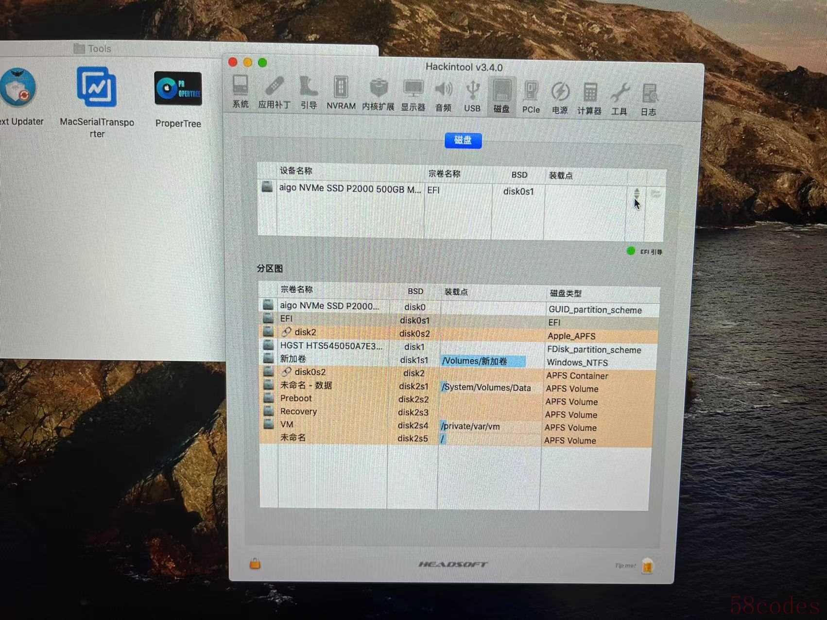 言归正传,下一步说一下怎么实现Wifi和蓝牙的连接,首先打开U盘,的Tools,然后用hankintool挂载系统盘上的efi分区,可以看到一个efi文件,这个就是clover引导的,将这个EFI文件备份,上传支持intel芯片的EFI文件,该文件的下载地址: