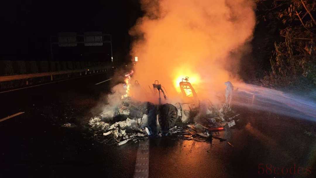 我没想到一时走神,车辆就撞上了护栏。我赶紧下车,从后备箱取出三角警示牌放在车后方,随后迅速撤离到护栏外的安全区域。刚站稳没多久,就看见车开始冒烟,隐约还有火光窜起。我急忙跑到安全的地方去报警……