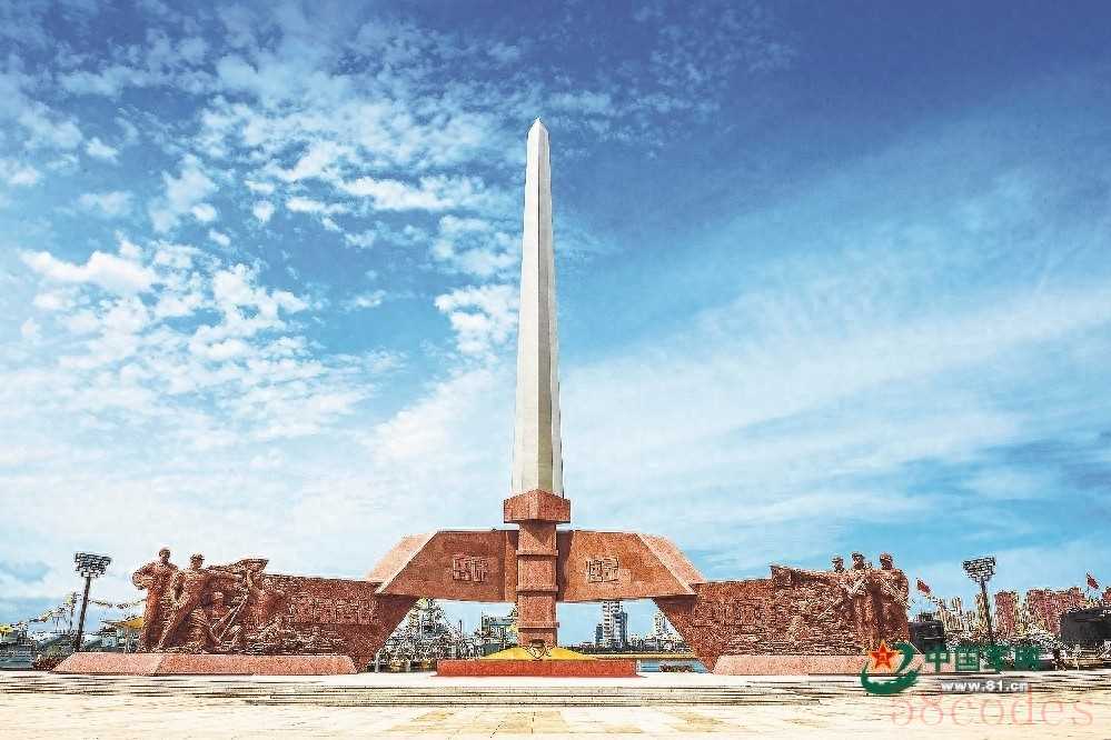 中国人民解放军海军博物馆海军英雄广场上的“亮剑深蓝”主题雕塑。