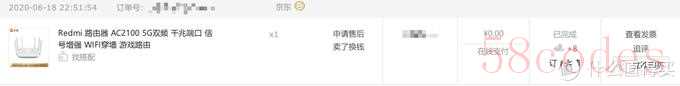 618的时候参加京东叠蛋糕最后分了30多块红利,没什么想买的就入手了这款红米AC2100,购买截图如下: