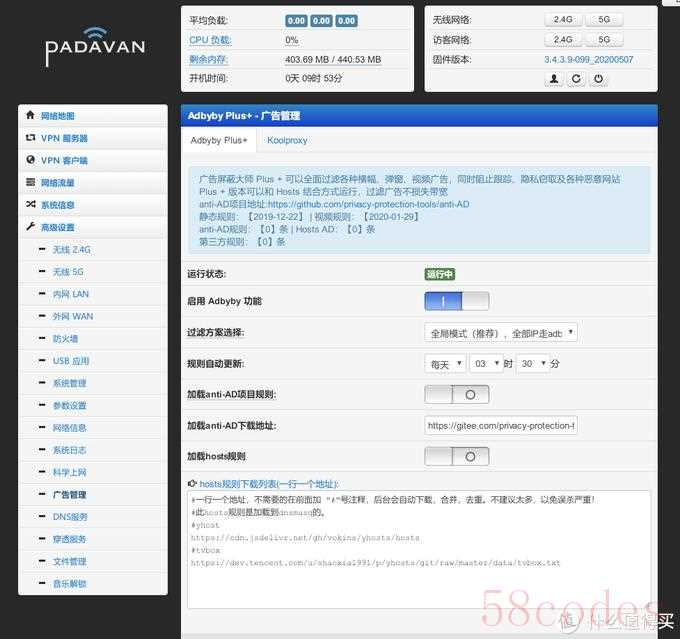 ▼我刷机最主要就是因为可以使用去广告功能,家里的小米电视,T1盒子都指望着路由器呢,教程可以看看我DIY小娱理由那篇。