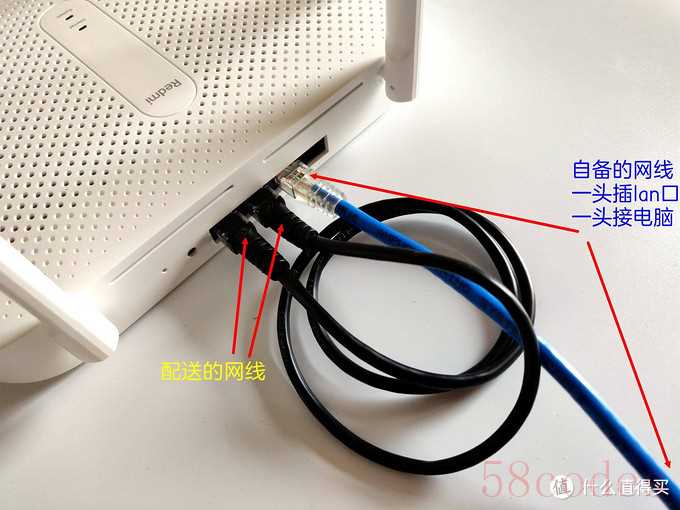 配送的网线一头连接路由wan口,一头连接路由lan口。