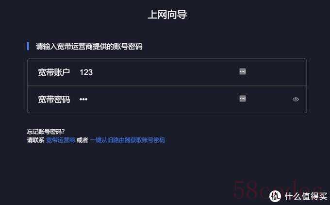 上网设置选择pppoe拨号,用户名和密码都填“123”。确认以后就不用管它,让他自己转圈圈。