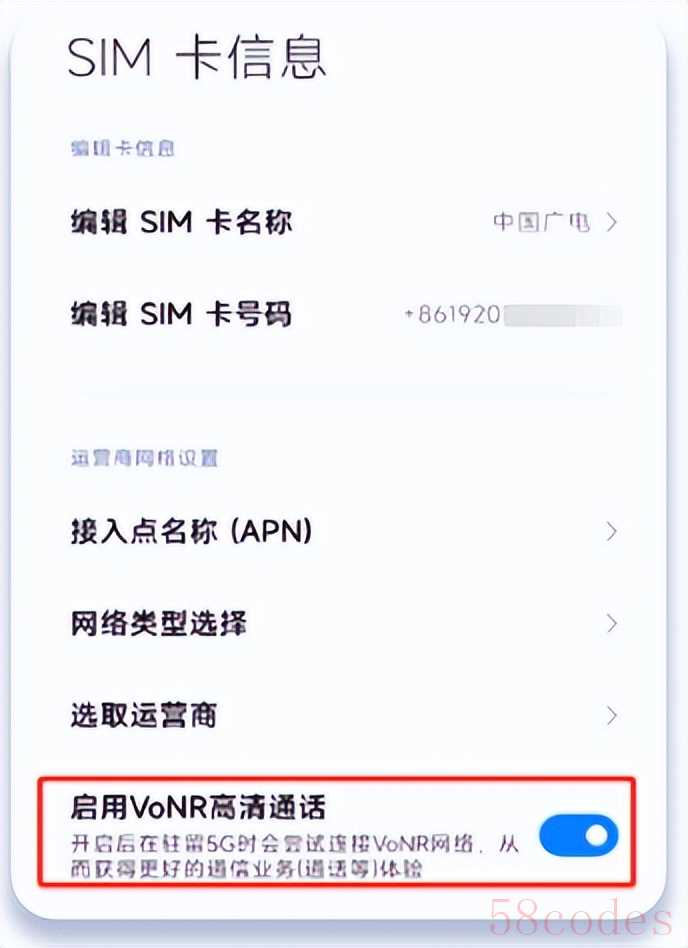 在拨号盘上输入*#*#8667#*#*显示5G VONR开关。设置中选择192 SIM卡槽,打开VONR功能,信号图标处显示出HD,则表示语音正常。