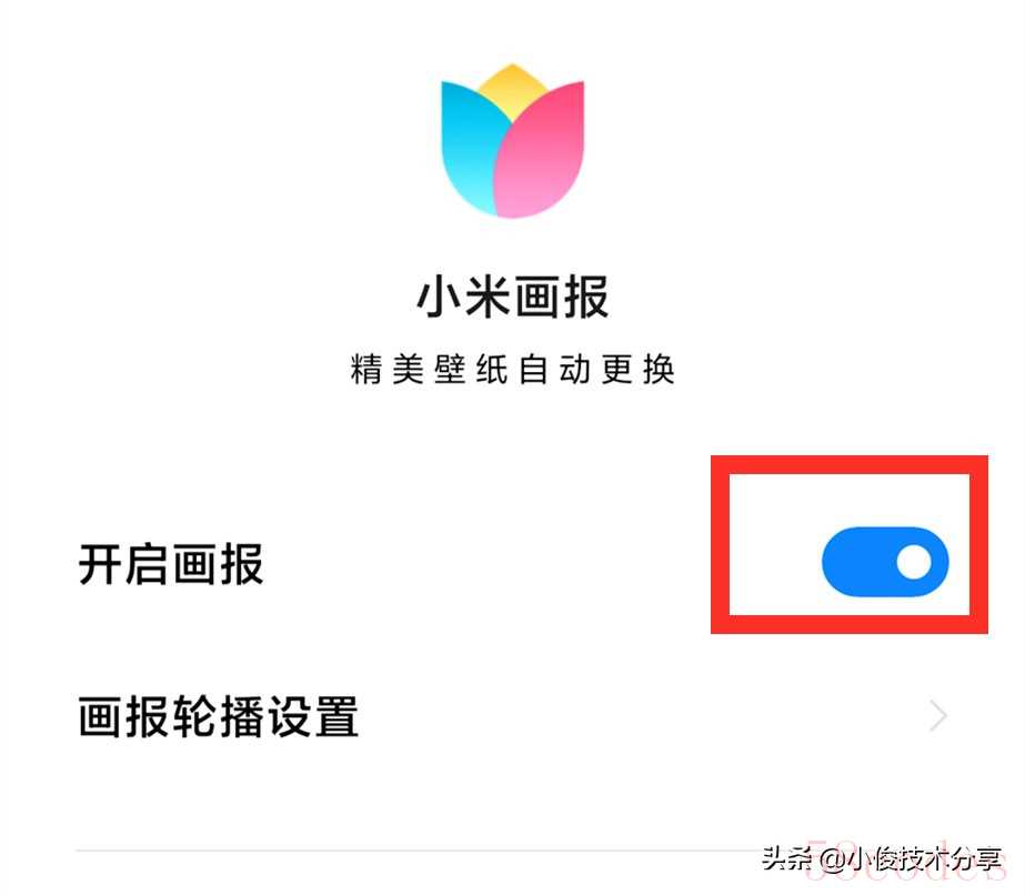 打开后可以看到【小米画报】默认是打开的,我们手动给它关掉!