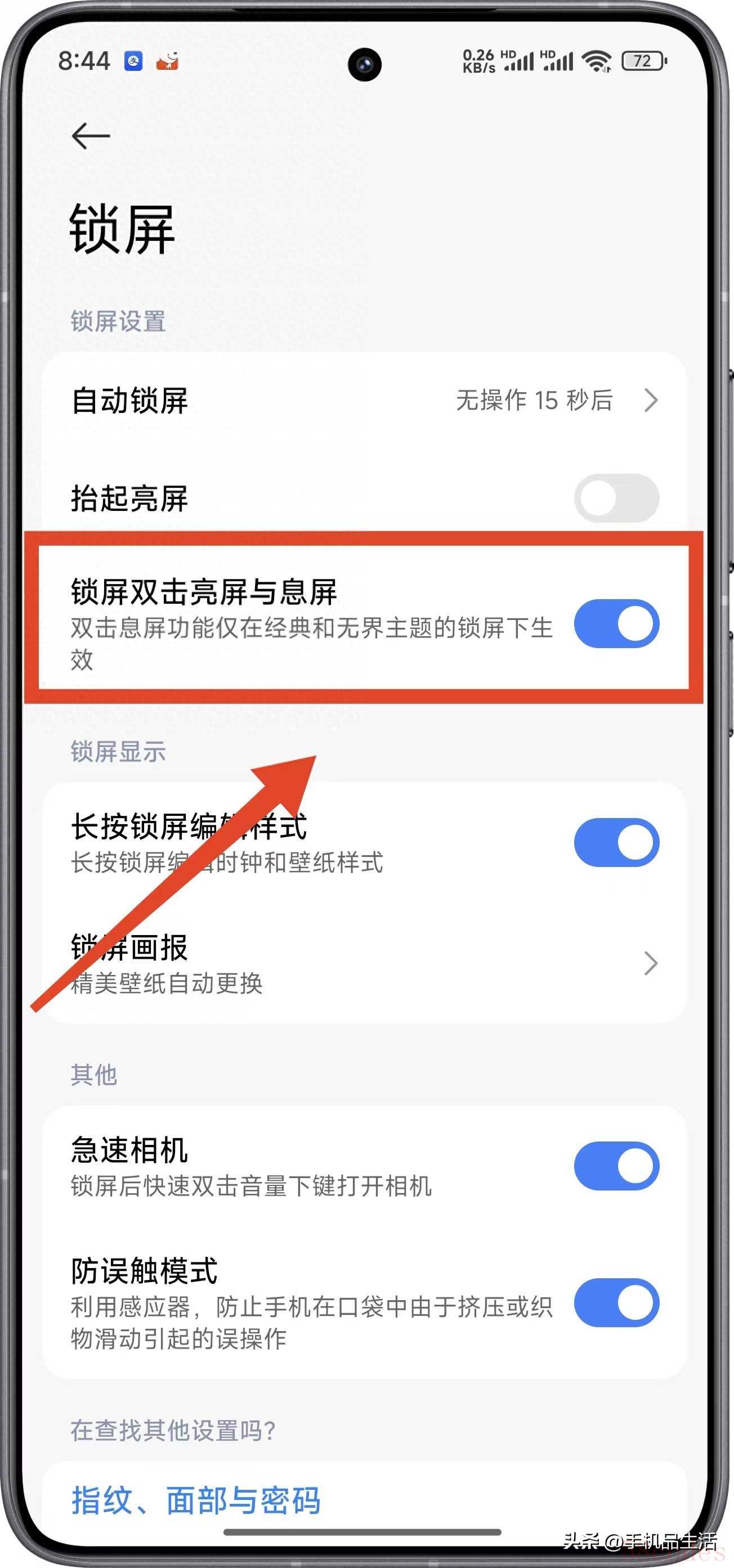 打开设置——锁屏——锁屏双击亮屏与息屏,这样不需要按电源键也可以亮屏息屏了,注意双击息屏功能仅在系统自带的经典和无界主体的锁屏下生效。