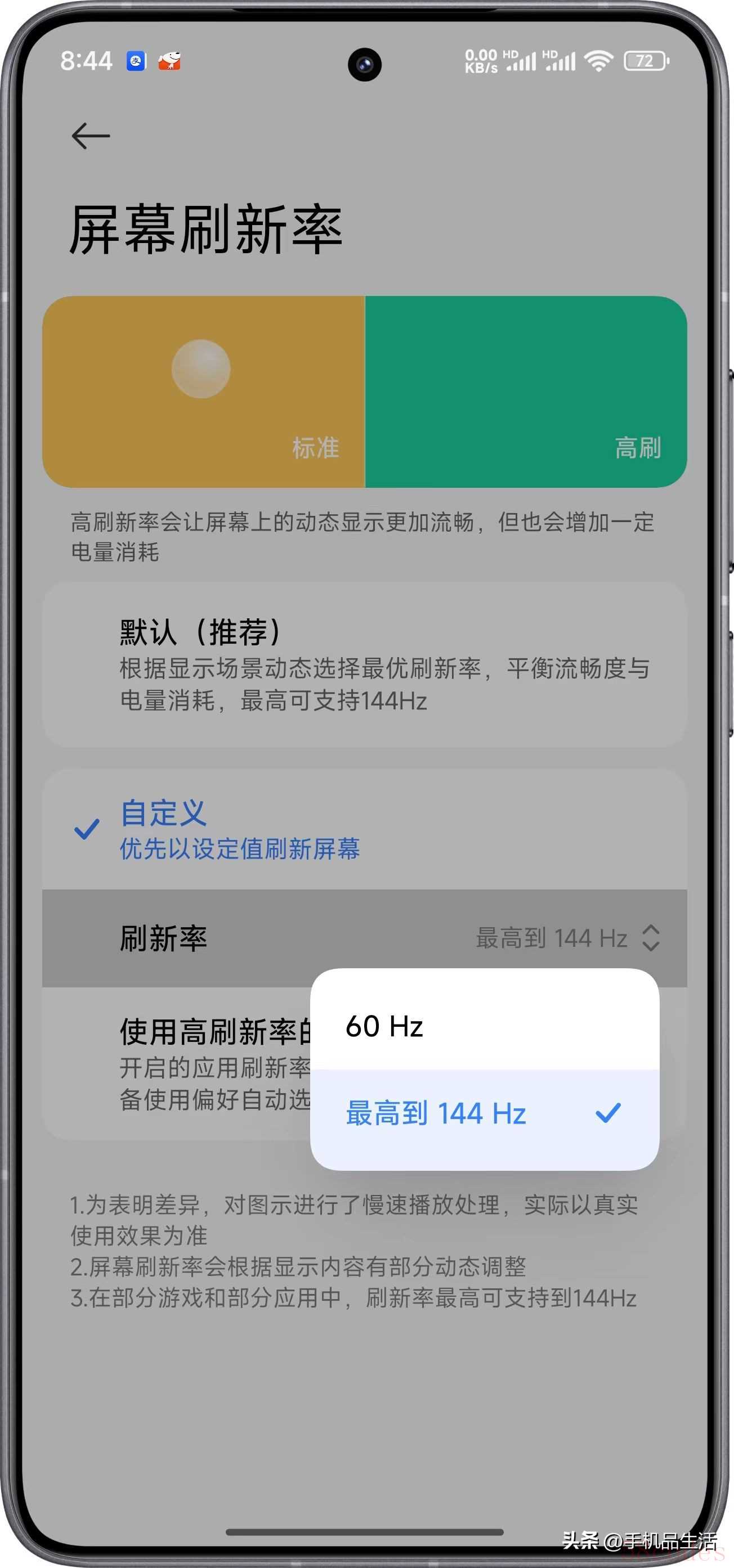 另外,建议将屏幕刷新率的“默认(推荐)”切换为自定义“最高到144Hz”,这样使用起来才会更加流畅丝滑。