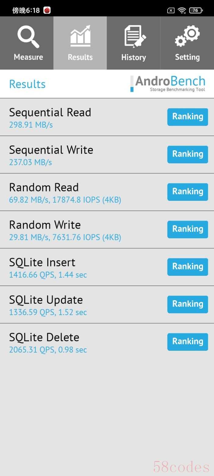 MTK Helio G25平台最高只能支持到eMMC 5.1闪存,这里我们通过AndroBech测试所看到的也是典型的eMMC 5.1闪存速度。