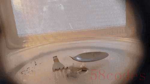 微波炉中的铝箔纸(上)和叉子(下)产生电火花,请勿模仿!| 图源:programmersought
