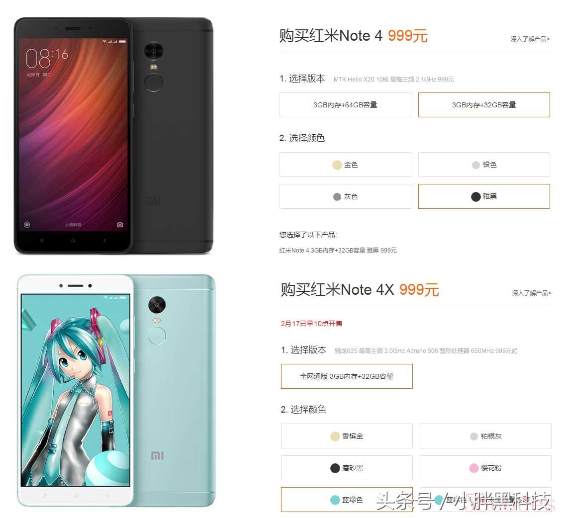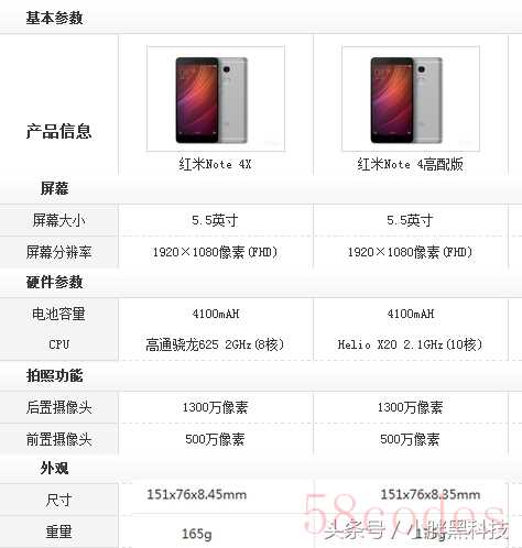 "核心对比:红米Note 4 vs 红米Note 4X"
