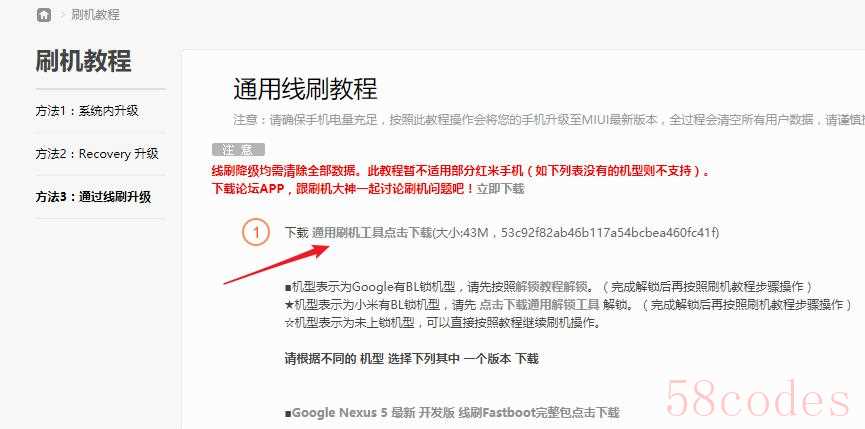 5.我们要先下载通用刷机工具,也就是下图箭头所示的位置
