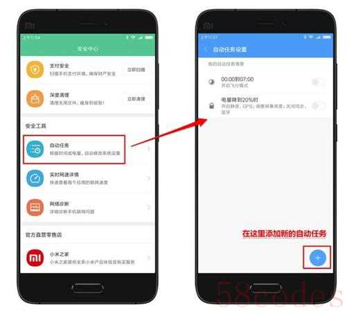 •首先,进入安全中心,拉到安全中心底端,你便会找到“自动任务”的入口。MIUI默认为你设置了两个,用户常用的自动任务。第二条电量自定义任务,就是我们可以针对性设置的选项。