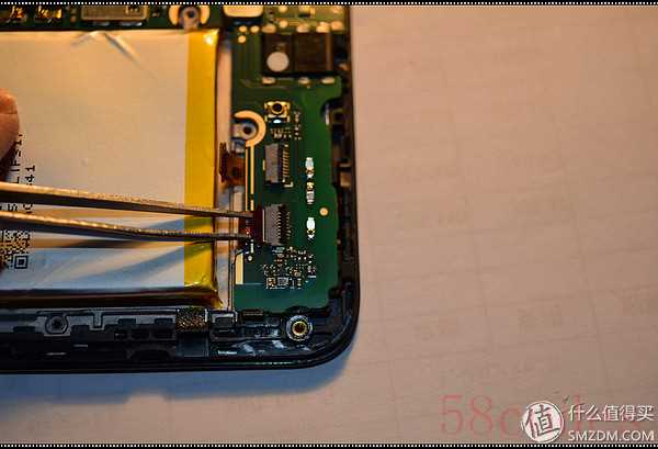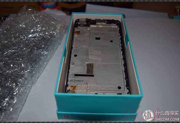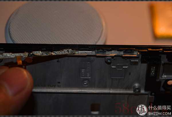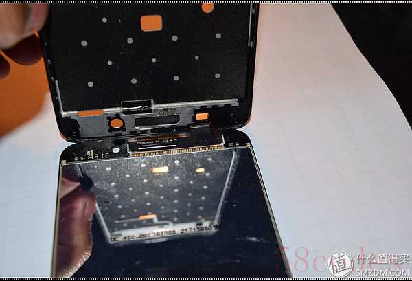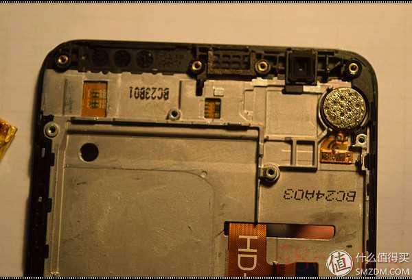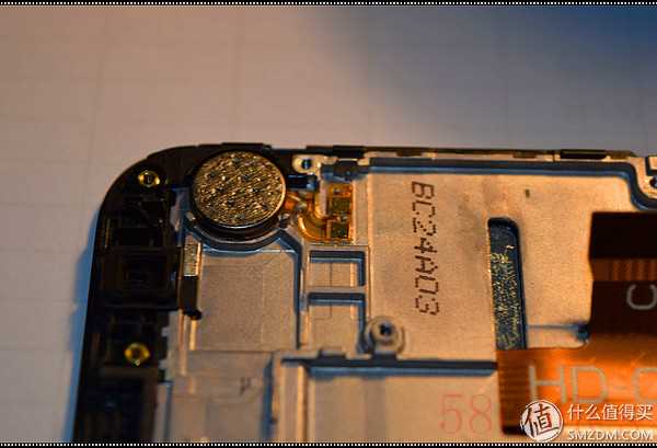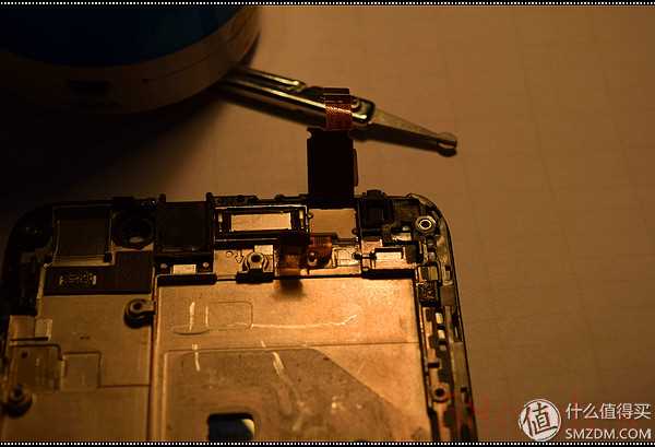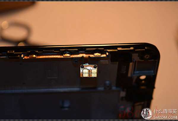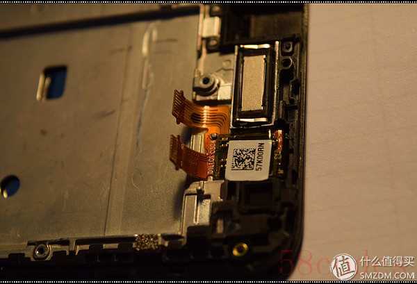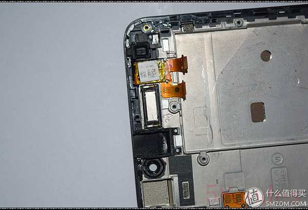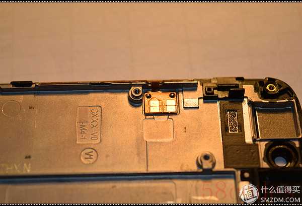 手机顶部布局,可以看到显示芯片下层叠着感应器,整体布局合理,这更有利于节省内部空间