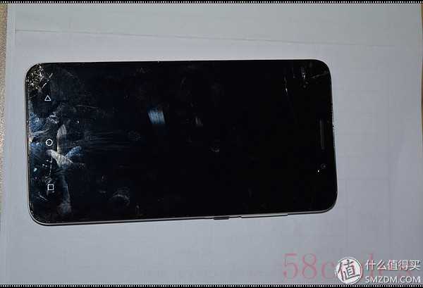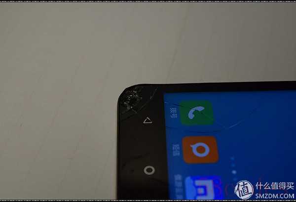 手机是15年3月在电信商城买的,前些天不小心,摔到地板上两次,左上角和左下角屏幕摔伤,如图,该机屏幕为总成屏幕,不能单独更换外屏。