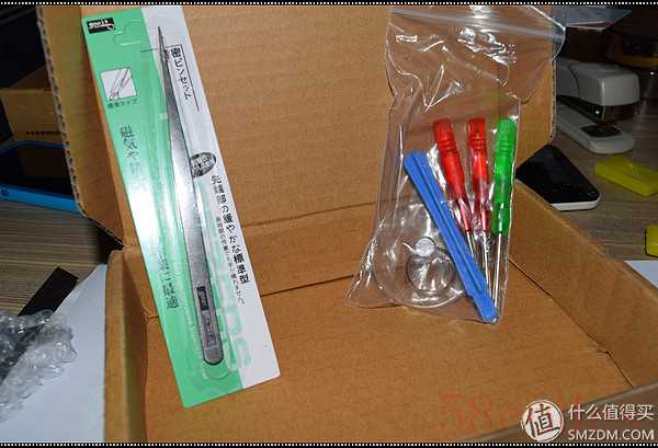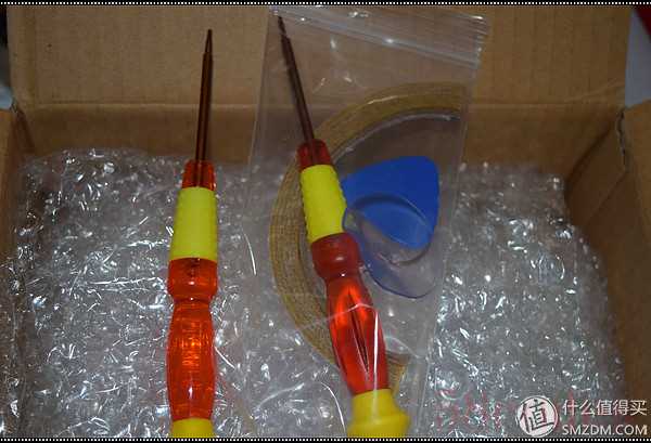 取出后,下面是拆机利器,螺丝刀三枚,镊子一个。