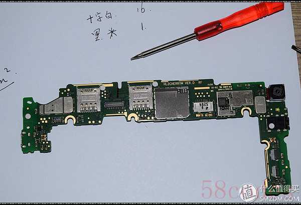 密密麻麻的螺丝,证明了4x是一款很容易拆解并且结构比较牢固的手机,比较有意思的是,只有一颗螺丝是梅花形的,其他都是十字的。