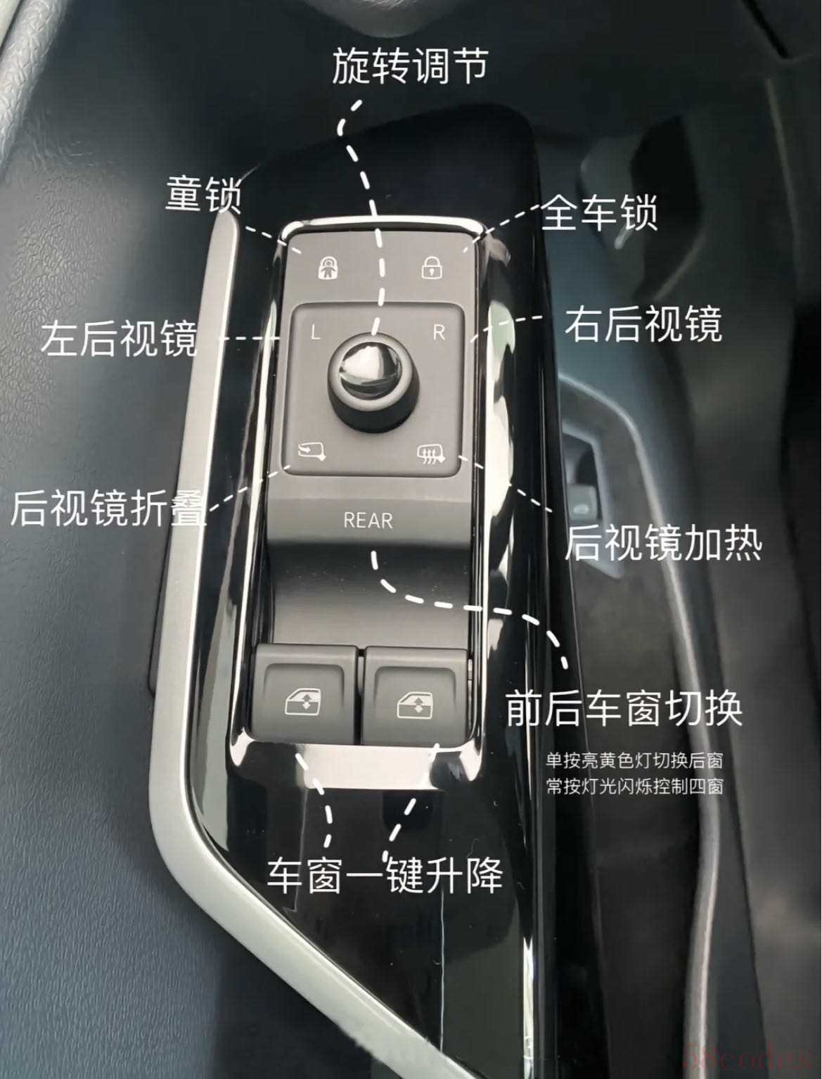 灯光按键:自动大灯,近/远光灯,左右转向/驻车灯,后雾灯,前/后挡风除雾