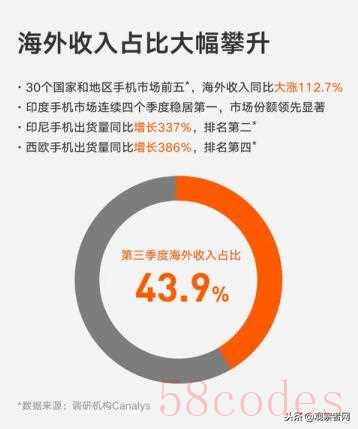 Canalys数据显示,根据第三季度出货量,小米在30个国家的智能手机市场中排名前五。其中在印尼,小米手机出货量同比增长337%,按出货量计排名第二。在印度,小米连续四个季度保持市场份额第一,达30%,比第二名高出7%。