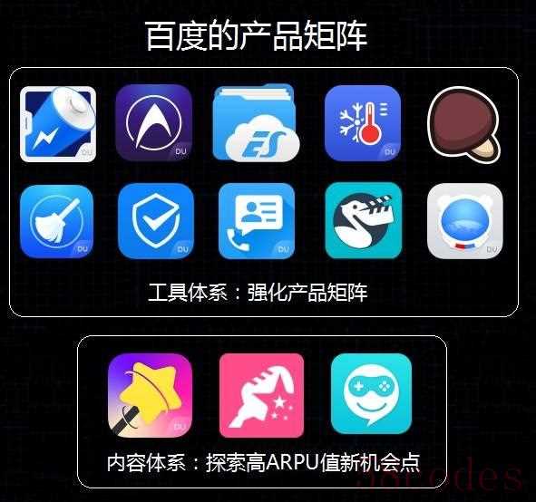 另外,百度也将国内互联网的打法移植海外,比如对比国内的百度全家桶,百度也推出了一系列海外产品,比如DU Battery Saver、DU Speed Booster、ES File、MoboMarket、Simeji、魔图等产品。然而这些产品,也未能帮助百度打开海外知名度。
