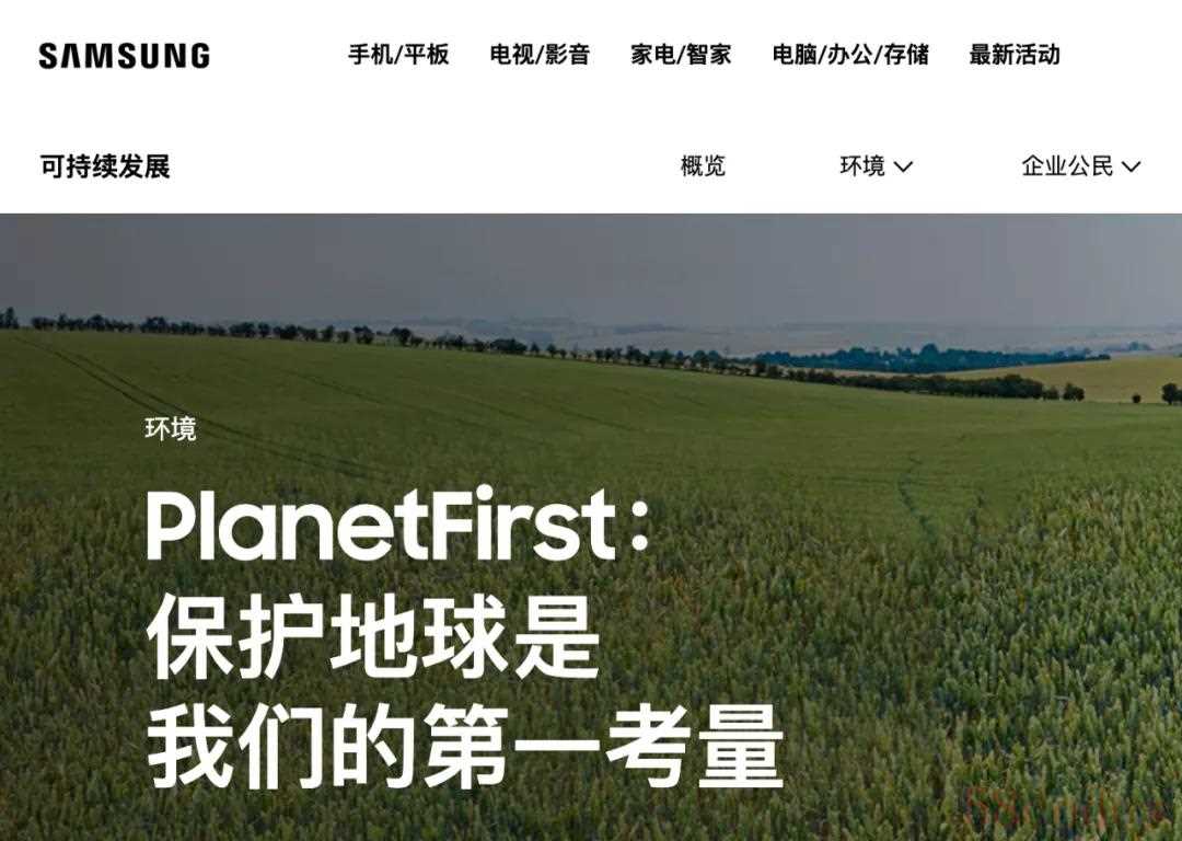 毕竟像苹果三星这种国际大公司,都是需要树立一个“环保”的形象,瞧瞧它们官网就知道了: