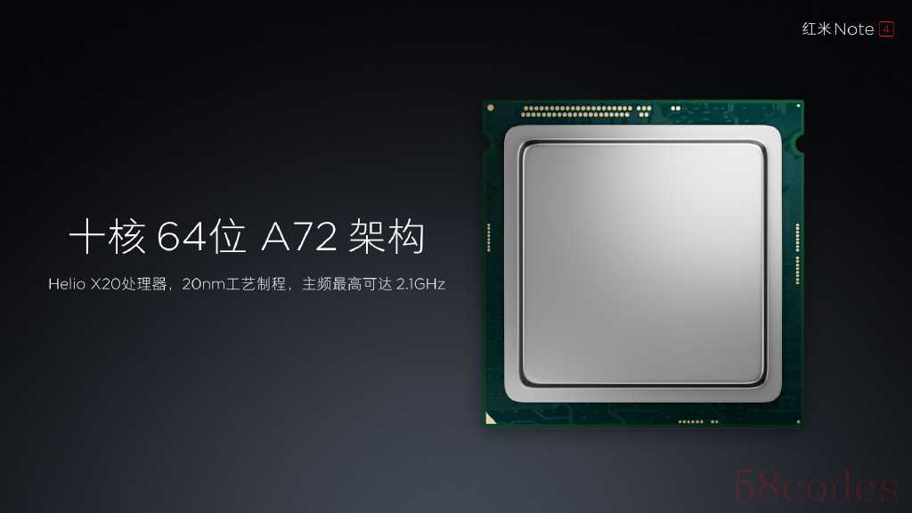 配置上,红米Note4配备5.5英寸1080p屏幕,搭载联发科Helio X20十核处理器,主频为2.1GHz,配备2GB/3GB RAM,前置500万像素摄像头,后置1300万像素摄像头(支持相位对焦、36级智能美颜),内置4000mAh大电池,运行的是MIUI 8系统。