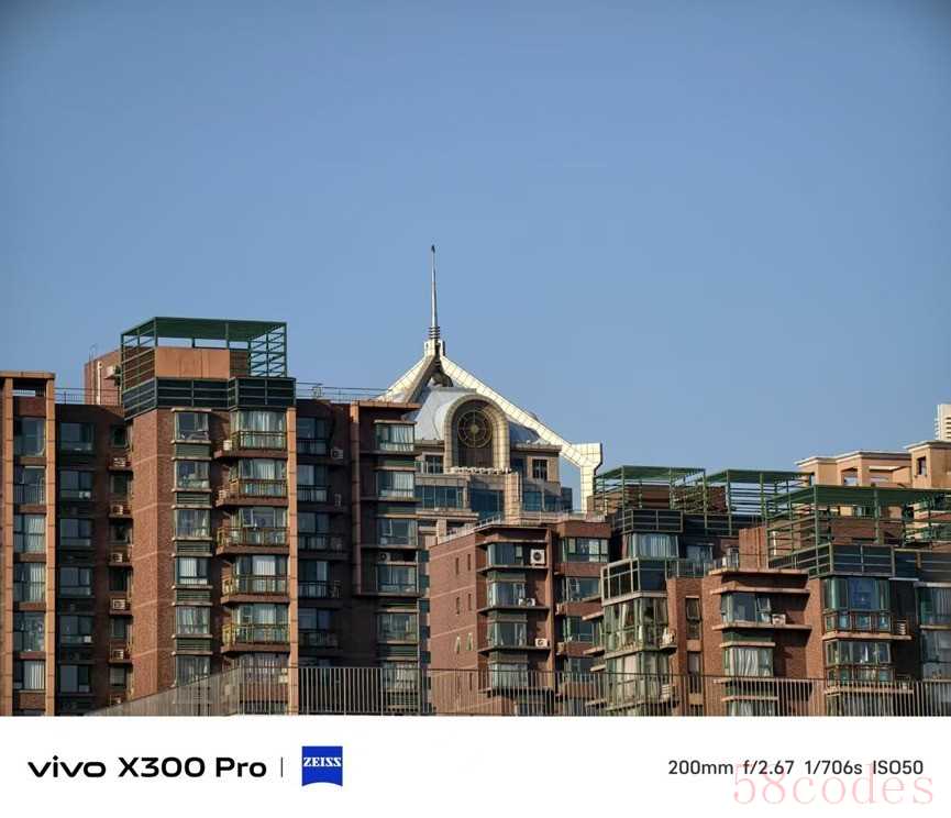就比如在这样的场景下,我们装上增距镜,就可以看清远处的房顶到底是个什么样的造型: