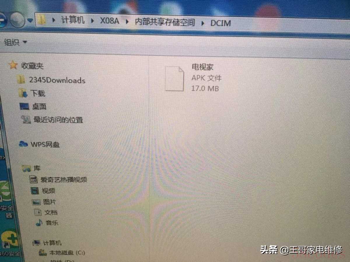 6.打开“我的电脑”,打开“X08A”,打开“内部共享储存空间”把需要安装的APP,比如 电视家.app 复制进去