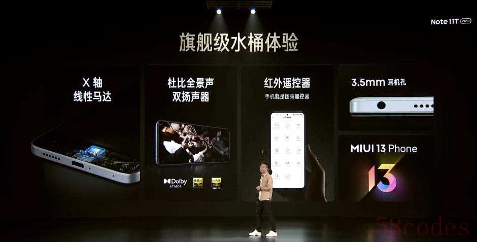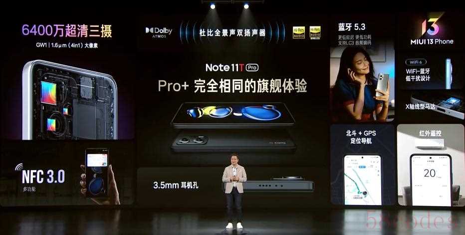 其他方面,搭载了极为先进的3.5mm耳机孔,立体双扬声器(支持杜比音效),红外遥控、多功能NFC、X轴线性马达、蓝牙5.3、512GB大存储、WiFi 6、MIUI 13等。