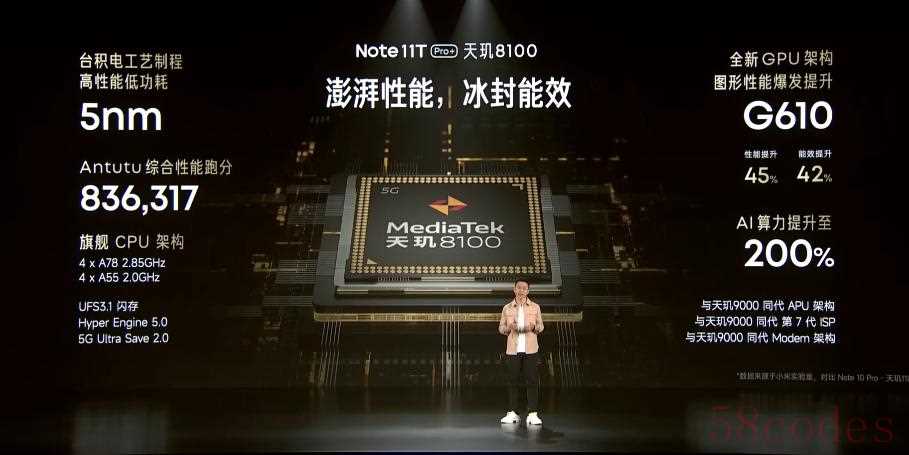 性能上采用一代神U天玑8100+满血LPDDR5+UFS3.1性能黄金三角,其性能相信大家已经很长清楚了,天玑8100安兔兔跑分高达83万分,远超骁龙888,同时又在功耗控制上相当给力。