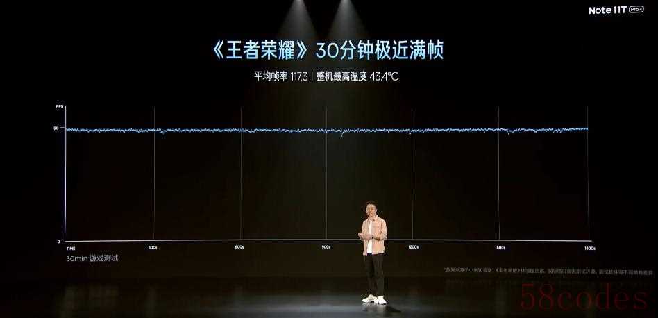 官方表示在王者荣耀30分钟的畅玩下,平均帧率117.3fps,整机最高温度43.4℃。