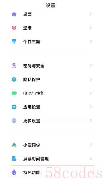 1、在手机自带设置选项中找到“特色功能”。