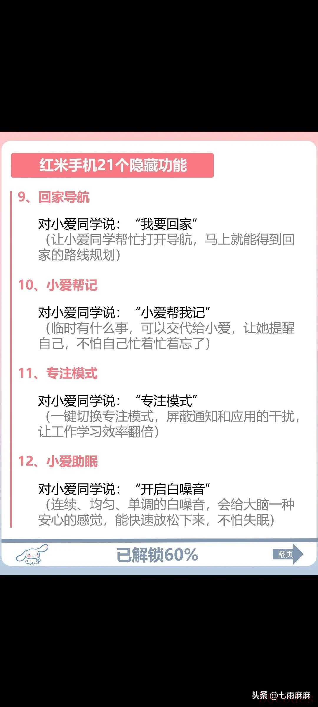 7. "智能助理":红米手机内置了智能助理功能,可以通过语音助手进行各种操作,如发送消息、设置闹钟等。