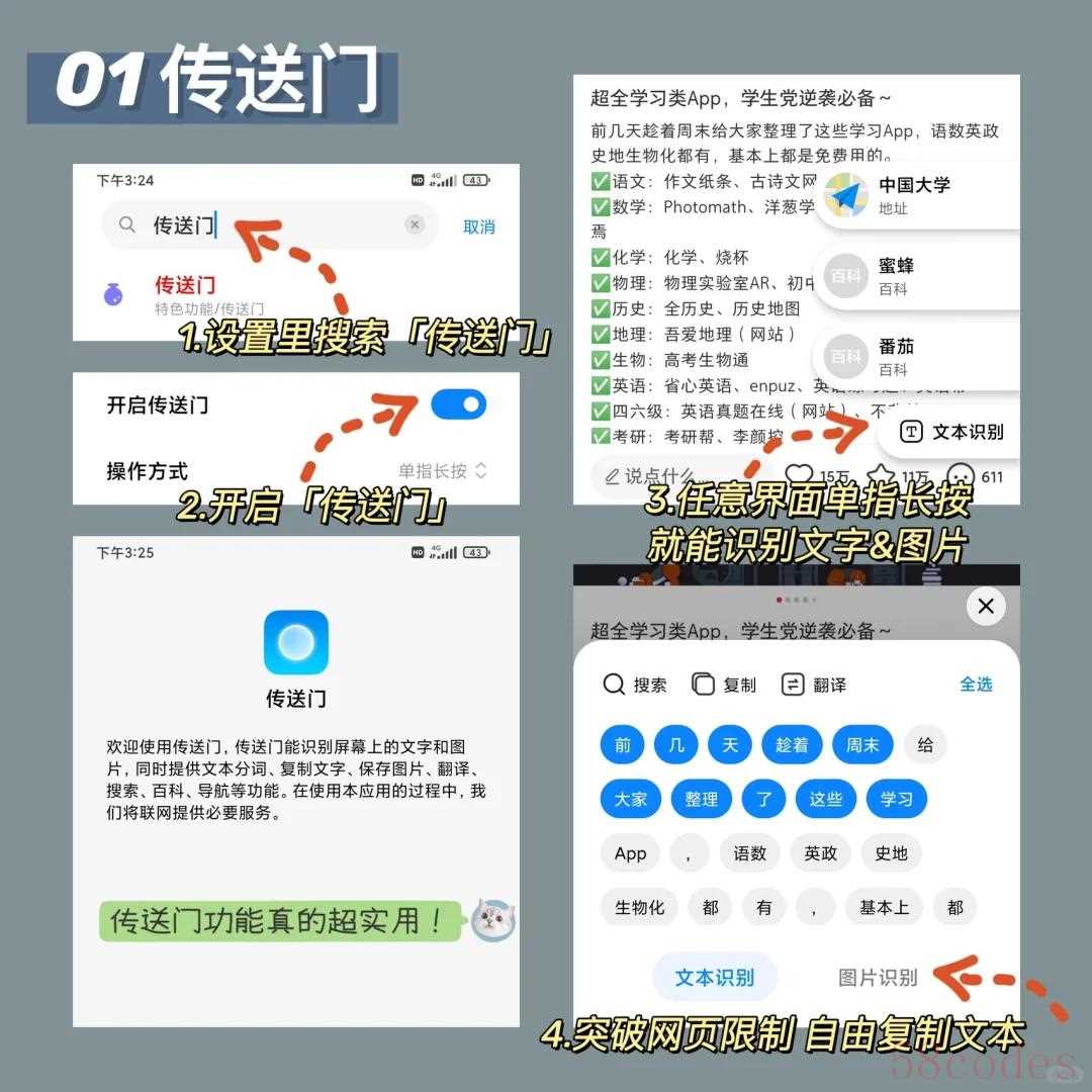 突破网页限制,自由复制文本。比如在某文库里需要付费才能看的内容,直接用这个功能就能复制文本。