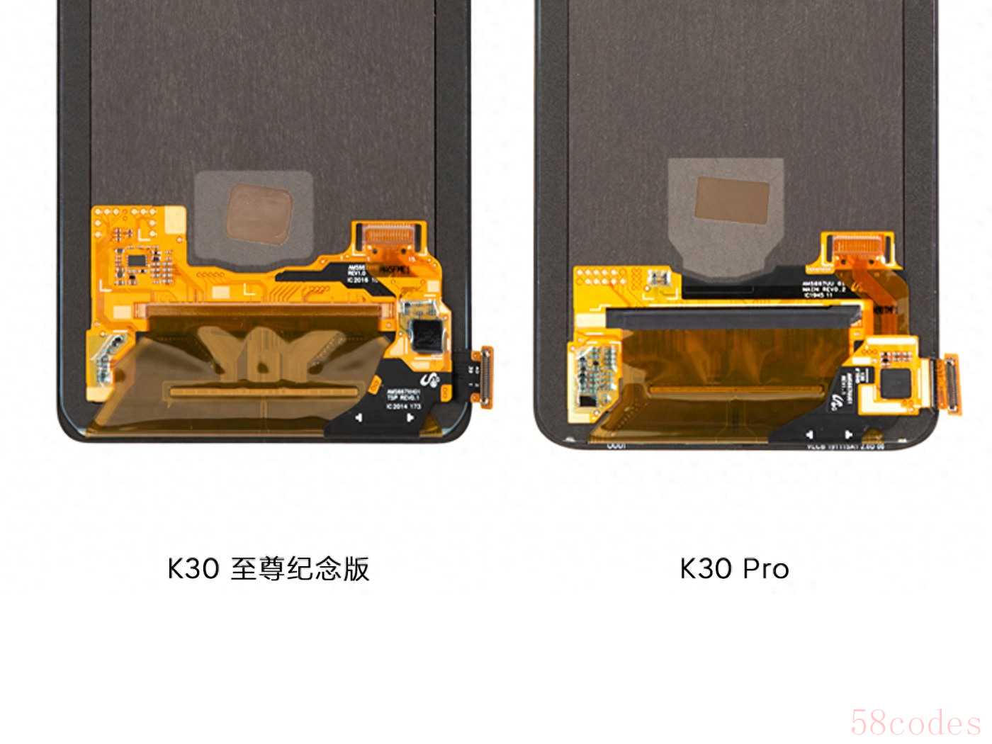 我们来对比一下 Redmi K30 至尊纪念版和 K30 Pro 在拆解层面的主要区别,特别是关注屏幕、影音和主板这几个核心方面。
