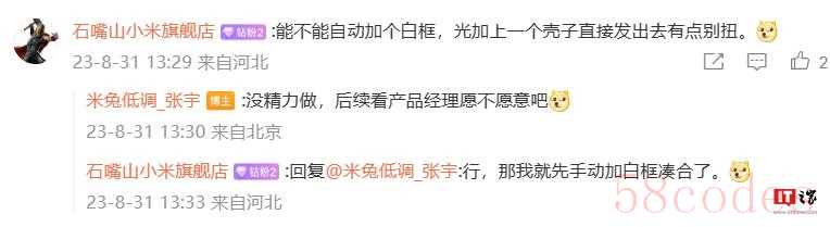 评论区也有用户询问能够否自动加白边,张宇表示“没精力做,后续看产品经理愿不愿意吧”。