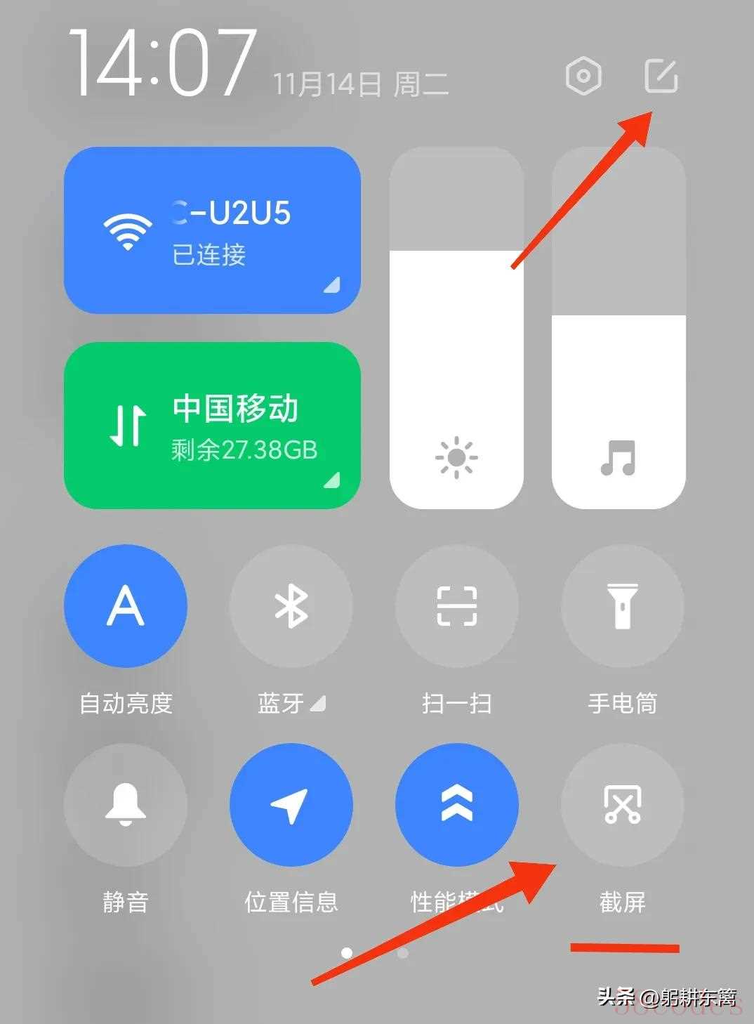 工具栏。手机工具栏截屏操作也是很方便快捷的,在使用前,我们要先把工具栏重新组织一下,把我们经常用的一些快捷键尽量放首页上,这样我们下拉工具栏的时候,不需要翻页在首页面就可以直接操作了。如上图,设置工具栏,点击工具栏右上角的展开按钮,展开所有快捷按钮,按住选择的快捷按钮拖动到合适位置松手就可以了,我是把“截屏”放在首页最右下角,方便单手操作。我们在需要截屏的时候,下拉工具栏,点击“截屏”,截屏图片自动保存到相册里面,是不是很方便?
