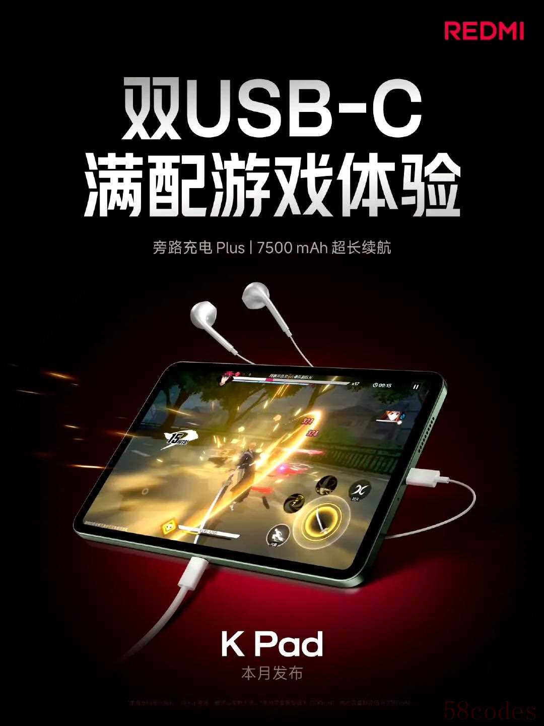 - K Pad:双USB-C接口(支持USB3.2 Gen1)+2016*2超薄对称双扬,外放响度比iPad mini高78%,低频响应更优。