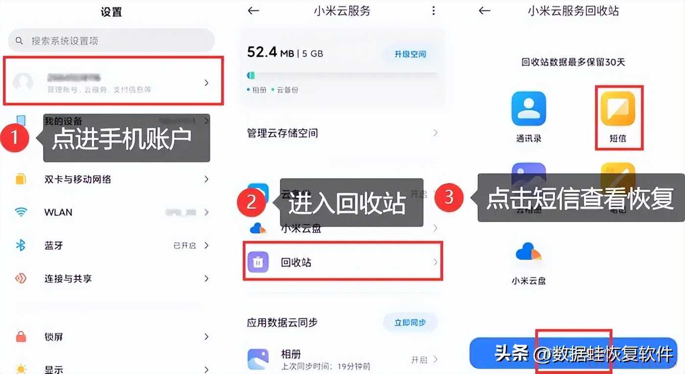 如果回收站里的短信过期,找不回来了,那么还可以使用云备份。使用云备份是一种便捷且高效的手机短信恢复方法,我们可以利用手机系统自带的云备份功能,将手机上的短信数据备份到云端,短信一旦被误删,我们就可以需要登录账号,将短信重新还原到手机上。下面是小编的找回过程,供各位参考!
