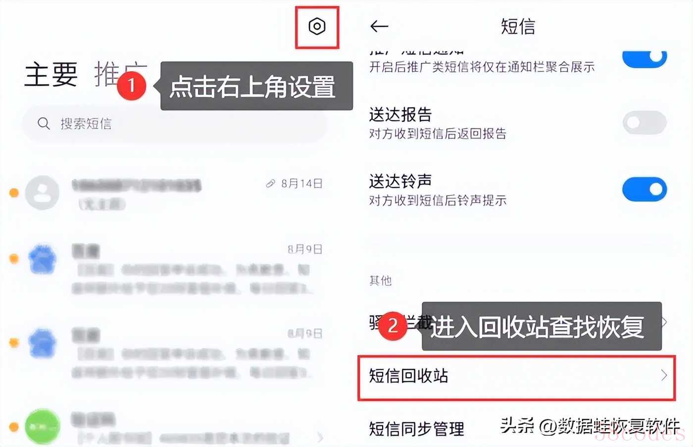 第二步:进入短信设置后点击【短信回收站】,查找被删除的短信然后恢复。