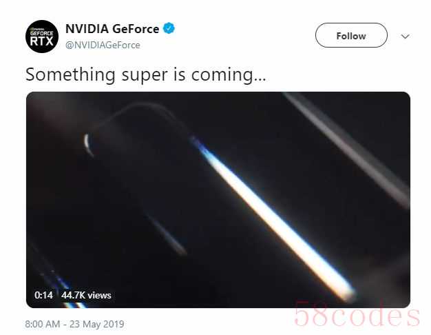 在台北电脑展开幕前夕,NVIDIA GeForce的官方账号放出了一个短短的5秒预告片,上面只有“SUPER”这个单词,然而在台北电脑展上NVIDIA也只拿出了RTX Studio笔记本品牌计划,并没有这个“SUPER”什么事情。