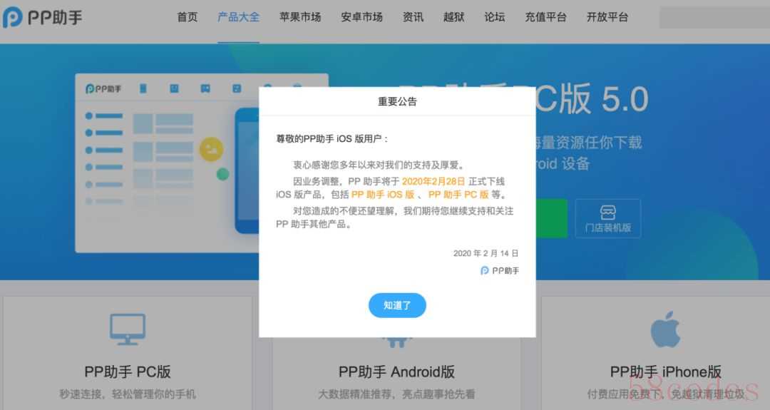 2月28日,豌豆荚PC版、PP助手iOS版正式下线。在更早之前的2月17日晚,百度手机助手开发者宣布91助手和安卓市场下线。