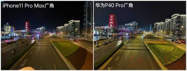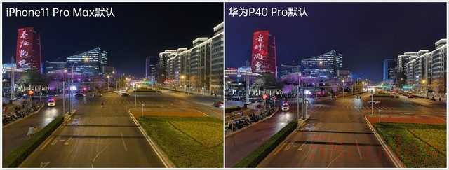 很明显的可以看出,华为P40 Pro在夜景模式下默认的实际表现是优于iPhone11 Pro Max的,特别是华为P40 Pro对于灯光的压制、对于画面的实际表现、对于色彩的还原都更胜一筹。