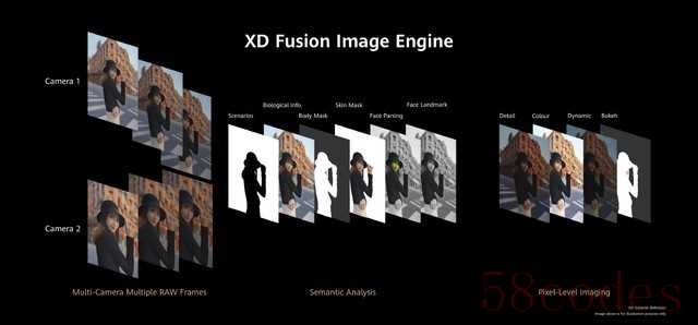 此外,华为P40 Pro为了提供更好的拍摄画面,内置了华为XD Fusion图像引擎。通过多镜头高保真信息融合、语义理解和分割、像素级画质处理,增强图像细节,提升整体影像的画质。多摄像头采集高保真的图像信息,能够提供更大图像信息量,保留曝光、深度等信息;通过语义理解和分割,智能计算出深度、人脸特征点、肢体区域和皮肤区域,共同输入NPU神经网络;最终进行像素级图像处理,得到更佳虚化效果、动态范围、细节和色彩的图像。