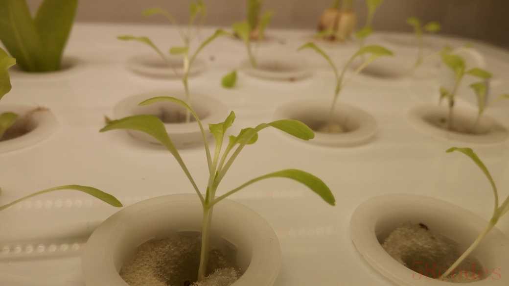 弱光下的微距,拍摄茁壮生长的生菜苗。