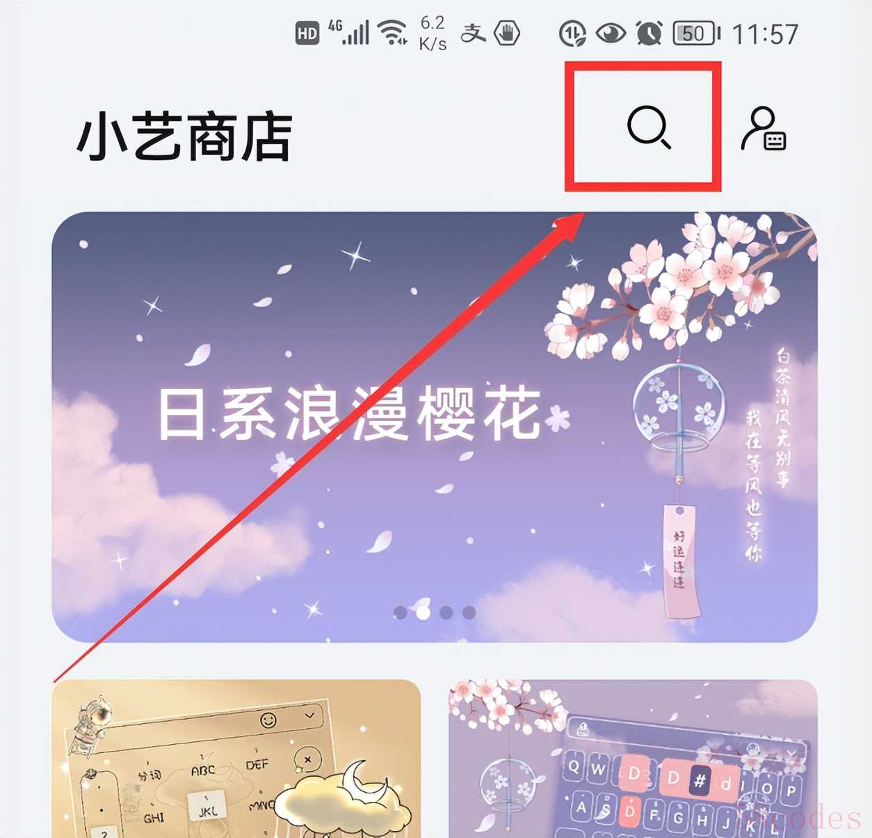 这个界面多出来一个“皮肤商店”,点击它就能进入小艺输入法的皮肤商店界面(如下图)。