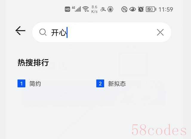 然后输入“开心”2个字,点击搜索,就会自动从小艺商店里搜索与“开心”相关的内容。