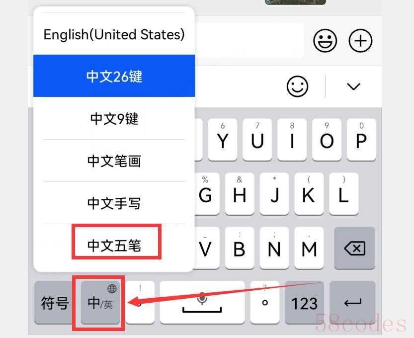 当然,我们也可以在输入界面,直接长按“中/英”按钮(如下图),就会弹出输入法列表的窗口(如下图)。